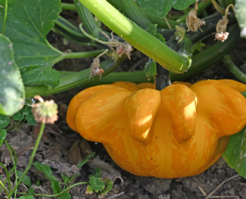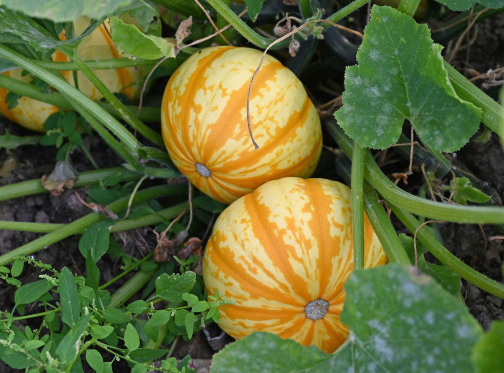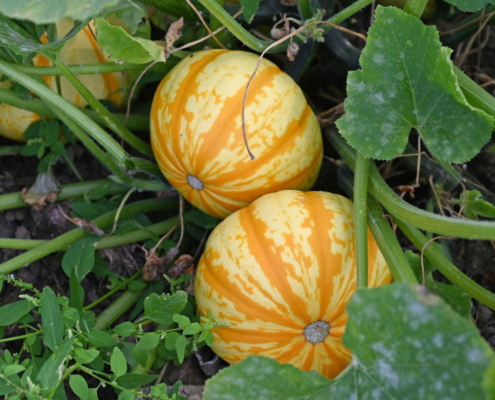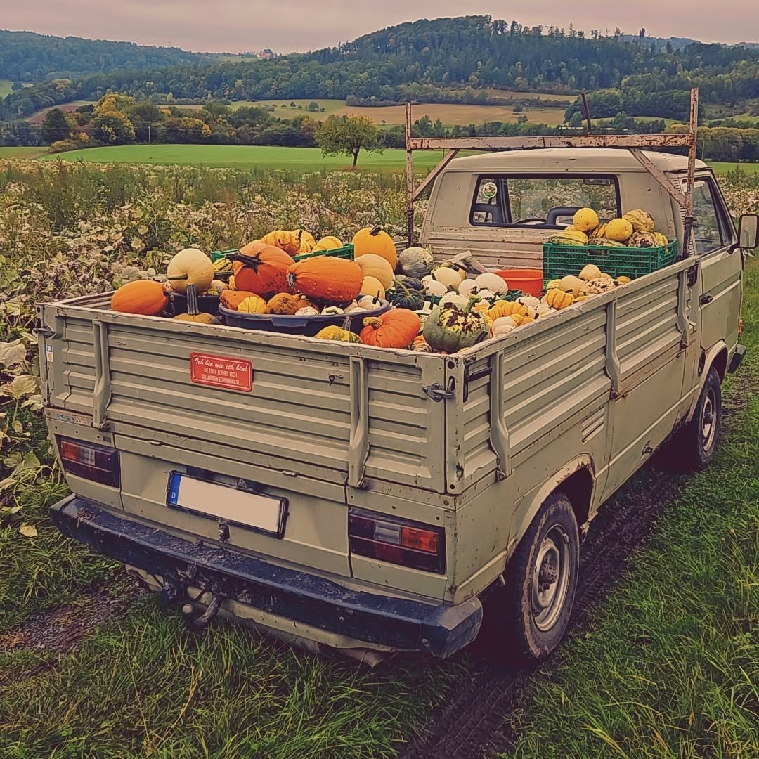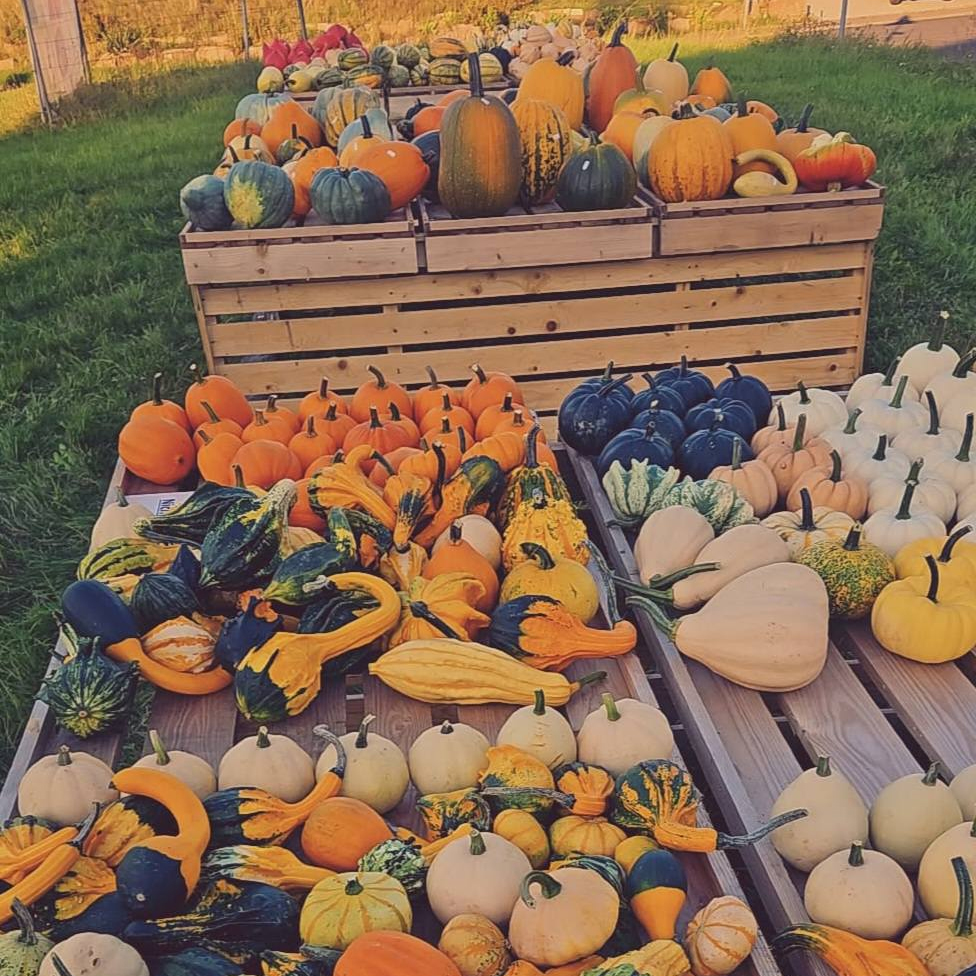 Direkt neben den Tomatenpflanzen breitet sich ein 1,5 Hektar großes Kürbisfeld aus, auf dem rund 100 verschiedene Kürbissorten wachsen. Darunter sind saftige Speisekürbisse, die sich ideal für herbstliche Gerichte eignen, sowie farbenfrohe Zierkürbisse – perfekt, um den Herbst zu dekorieren oder für einen stimmungsvollen Halloween-Look.