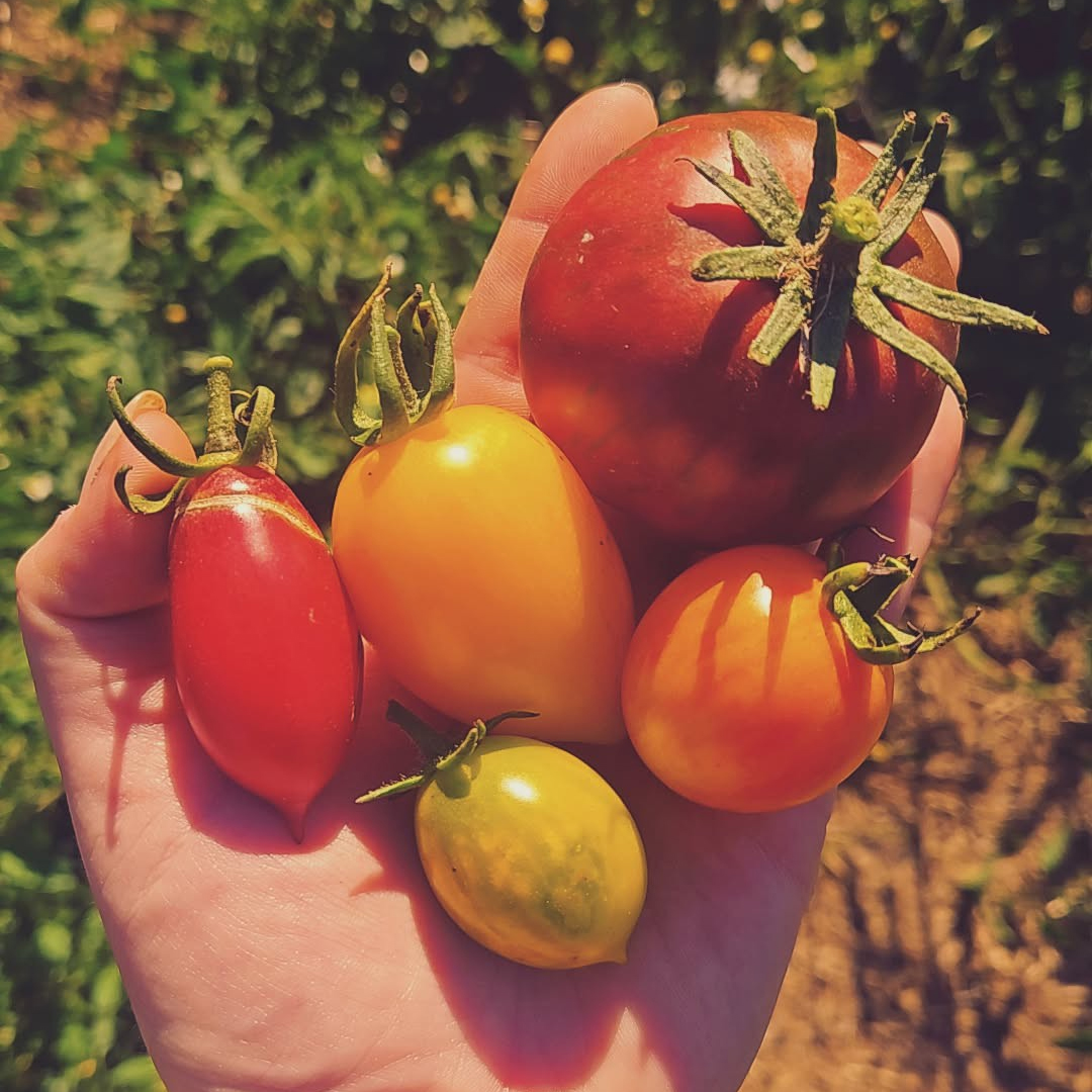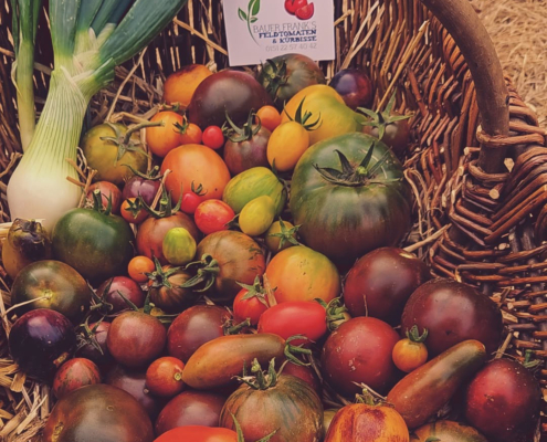 Die ersten Tomaten sind sind reif! Nächste Woche startet der alljährliche Feldtomaten-Verkauf direkt am Feld. Und über diese kleine Ausbeute haben wir uns ganz besonders gefreut.